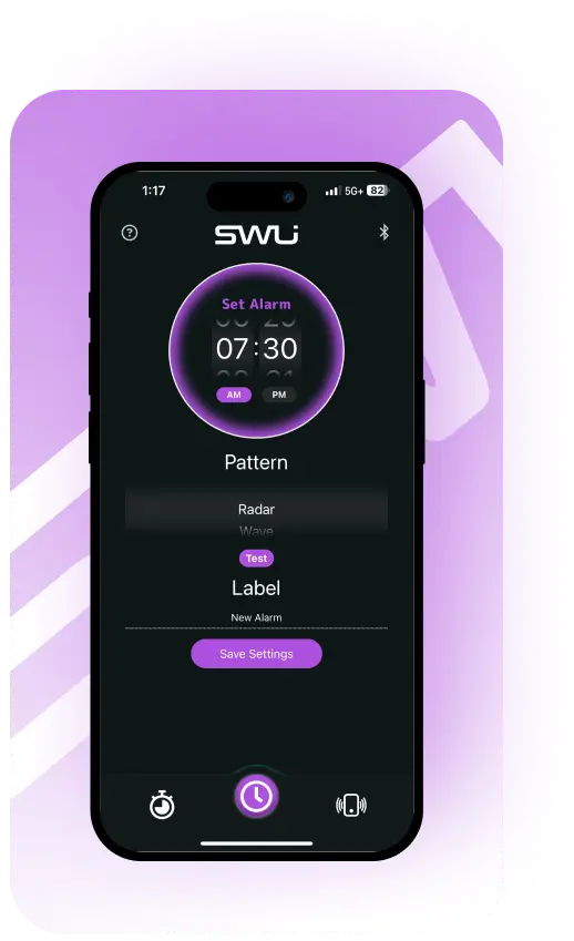 Customize your morning with a variety of unique vibration patterns, each adapting to your chosen intensity level. Easily explore and find your favorite using our app’s sample feature. Every pattern follows its own rhythm, blending distinct beats, tempos, and pulse variations to wake you in a way that suits you best. New patterns are released every month, offering you fresh wake up experiences to enjoy.