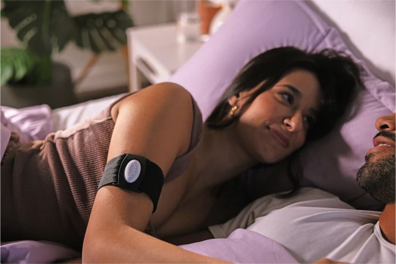 The SleepBand is made of a breathable mesh nylon blend with interior silicone rings for a secure fit without being too tight. It’s lightweight and designed to feel like athletic wear, ensuring all-night comfort. Find a perfect fit with the adjustable strap.