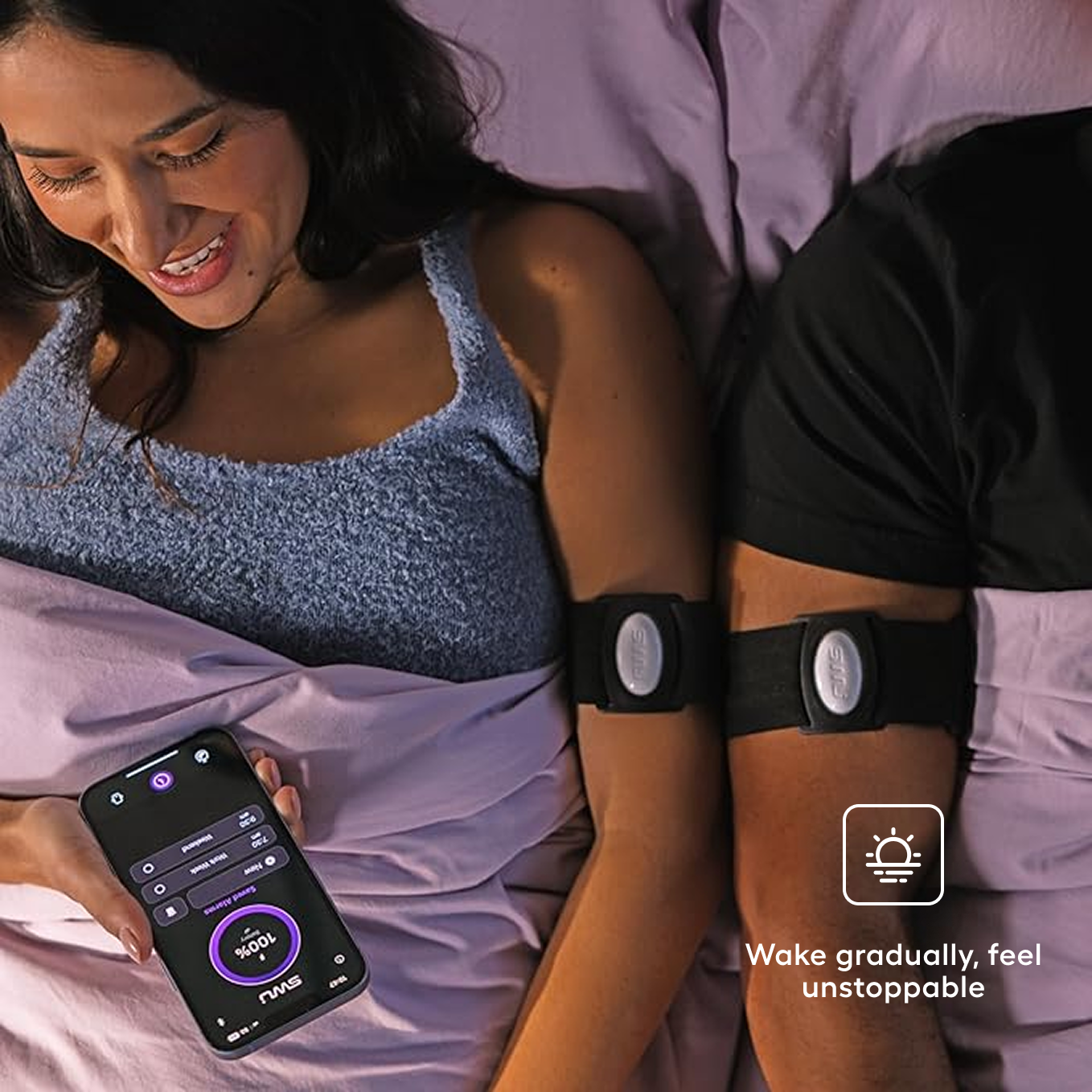 Feel like you slept in every day without waking your loved ones. SilentWakeUp’s personalized, silent vibrations gently transition you from deep to light sleep, so you start every day unstoppable.
